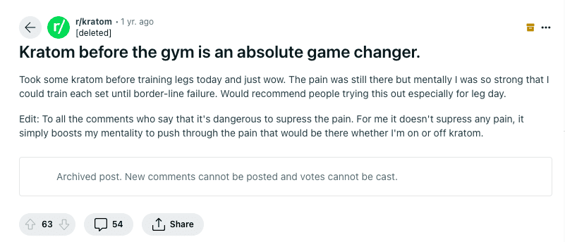 Reddit, the front page of the internet, is home to a wealth of user-generated content, including personal experiences, reviews, and discussions on various topics. Below is a selection of user experiences with kratom, especially as it relates to working out:
